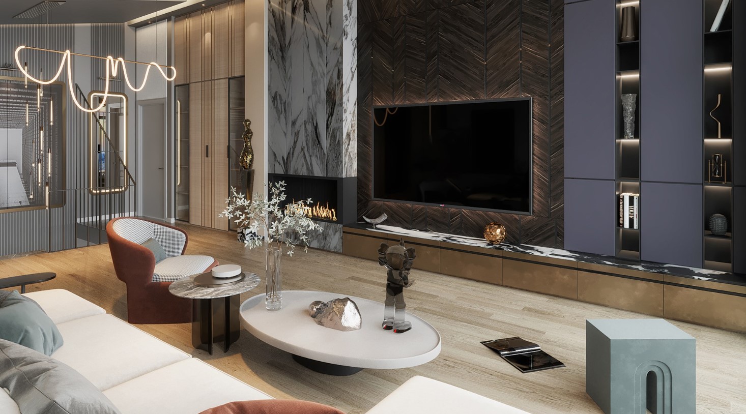 A luxurious project with a modern design within an upscale residential complex