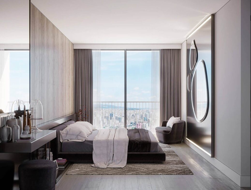 The project consists of 3 towers: the first tower consists of 43 floors, the second 35 floors, and the third 25 floors, each tower has its own shopping center, so that the total area of the project is 35 thousand square meters, consisting of more than 900 housing units, to provide you with many housing options starting from 1 +1 to 5+1 with penthouse apartment options