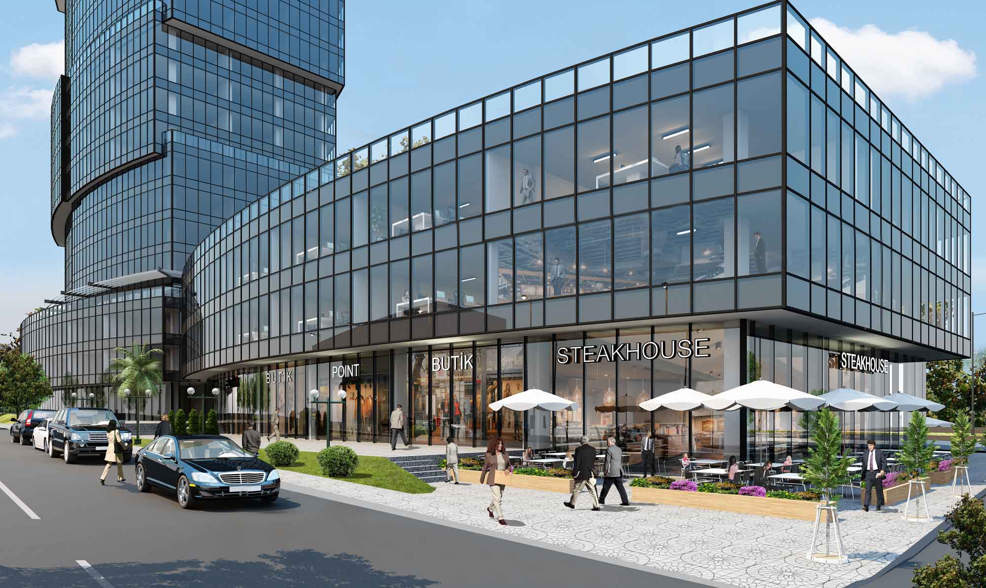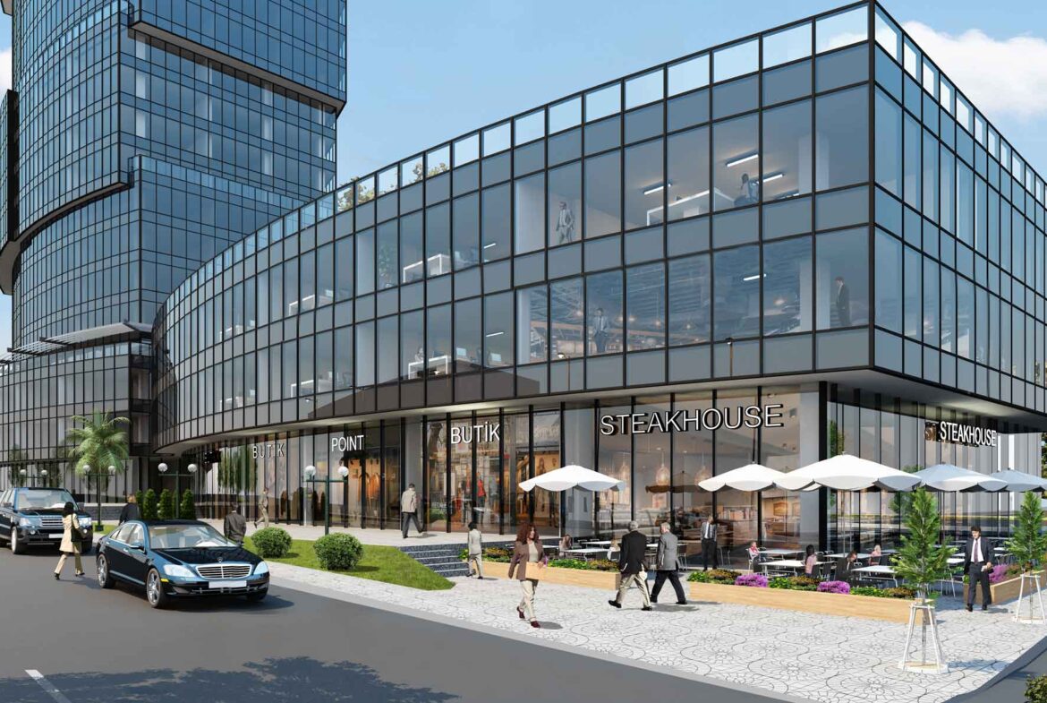 Office spaces in the project range from 80 square meters to 1316 square meters. The commercial areas, which are 14 units, range between 99 and 555 square meters
