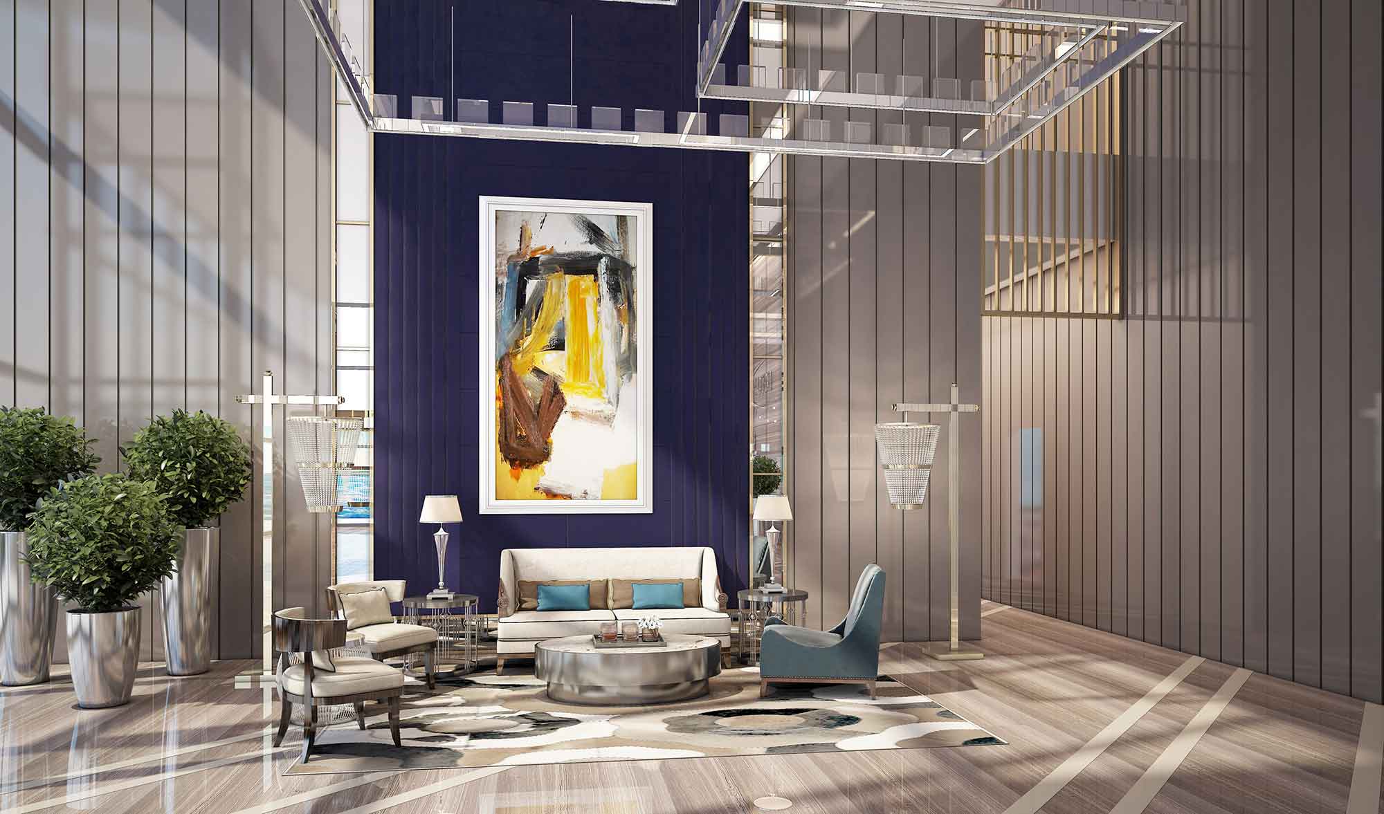 The project includes a spacious and elegant restaurant on the 18th floor and a fitness center and sauna on the 19th floor