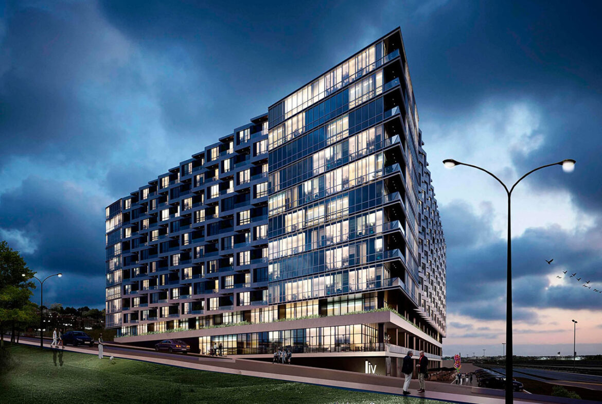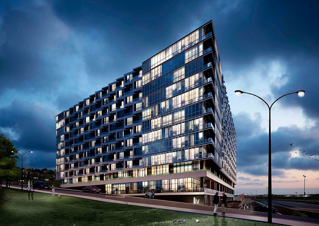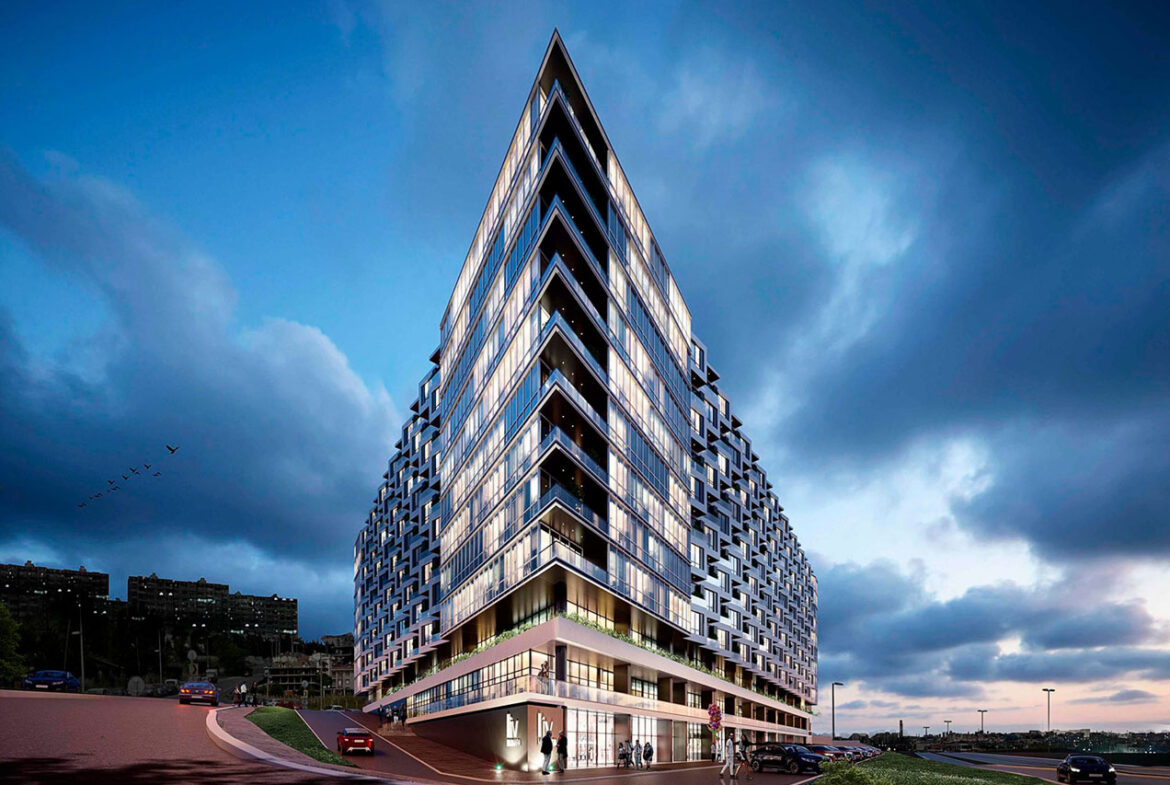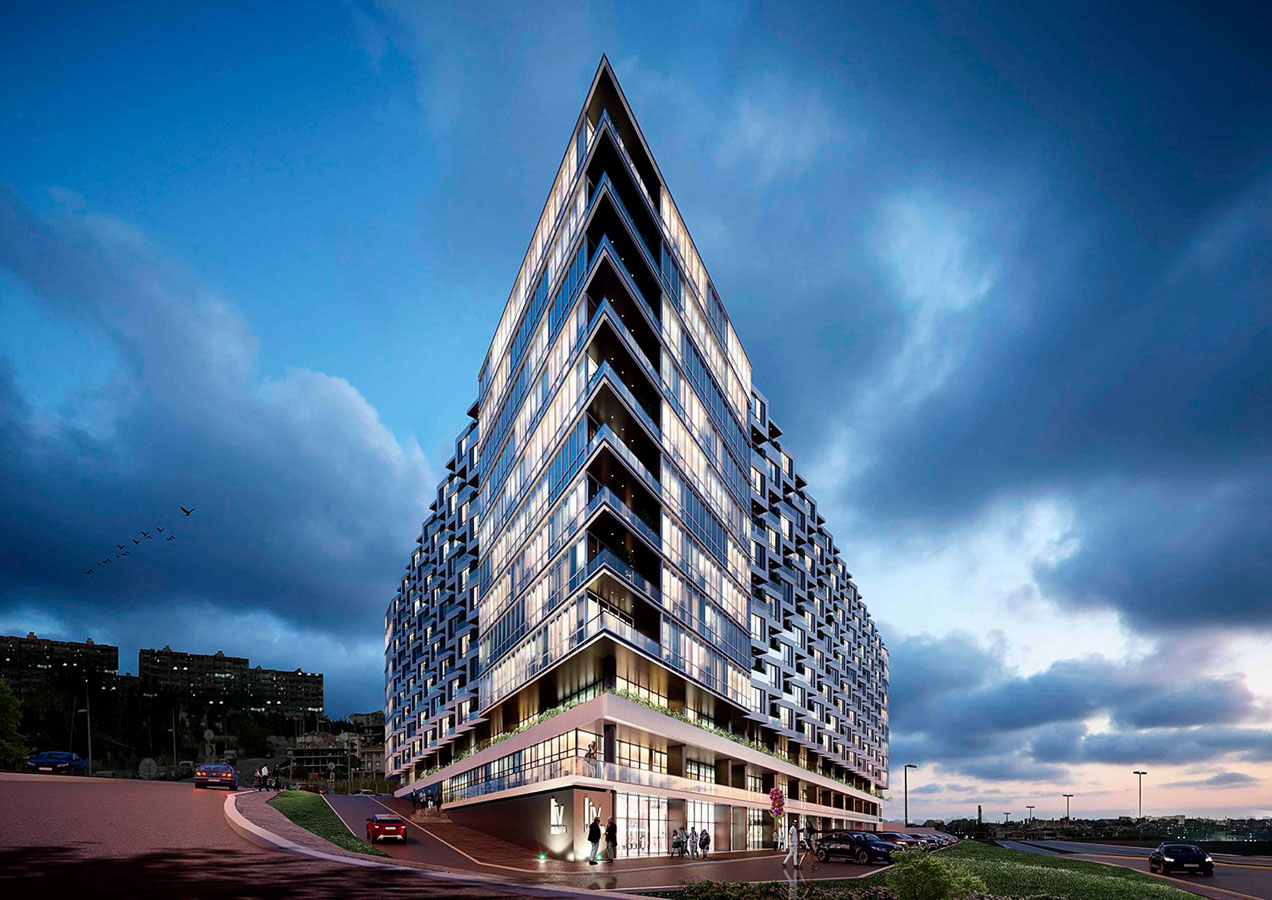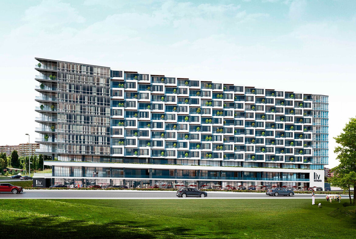 The project consists of 3 blocks with a height of 12 floors and has 495 housing units and 40 shops.