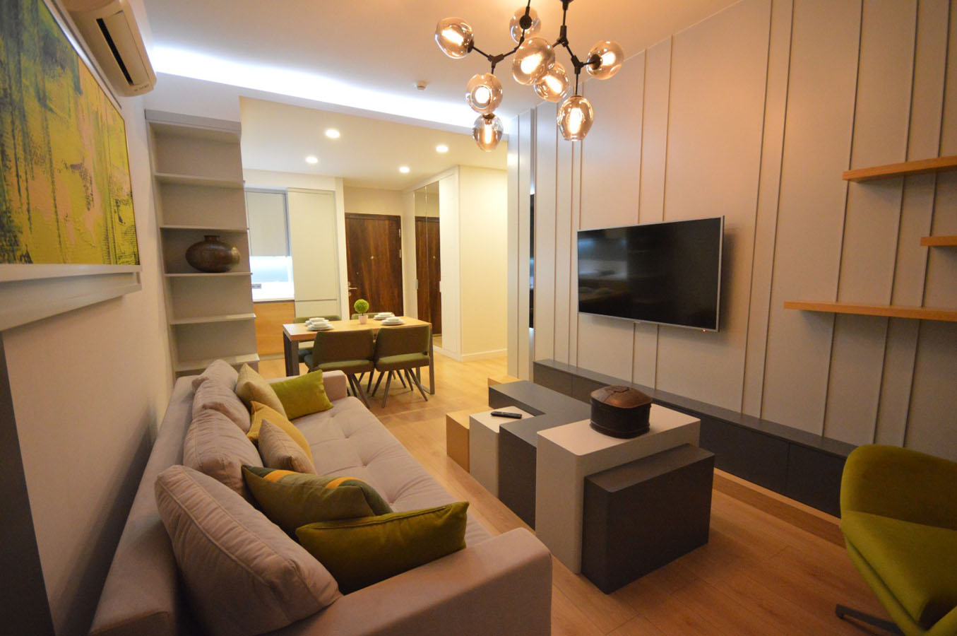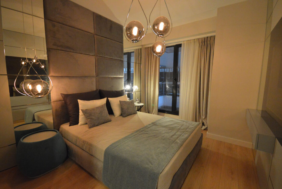 The project consists of 3 blocks, two of which have 18 floors and the other one has 35 floors. The project includes 496 housing units and 33 commercial units which is a shopping center in the project and dedicated to meet daily needs. Also, there are a number of restaurants and cafes in the project. All apartments have the view of the sea. The apartment options vary from studio to five-bedroom and their sizes vary from 87 square meters to 307 square meters.