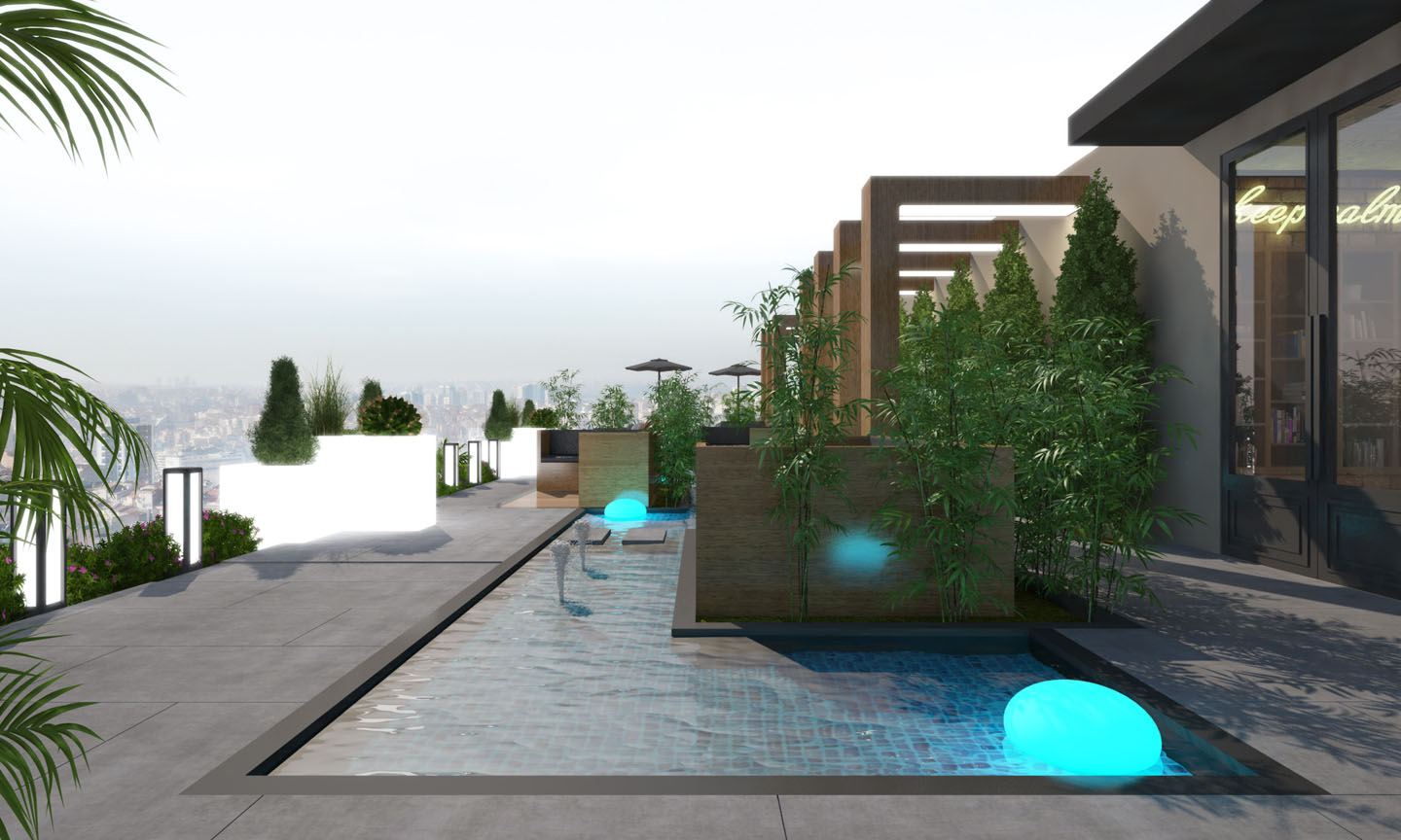 The upper and last floor is equipped with a wonderful garden which has a very beautiful view of the city as well as has a hall for celebrations and internal and external meetings.