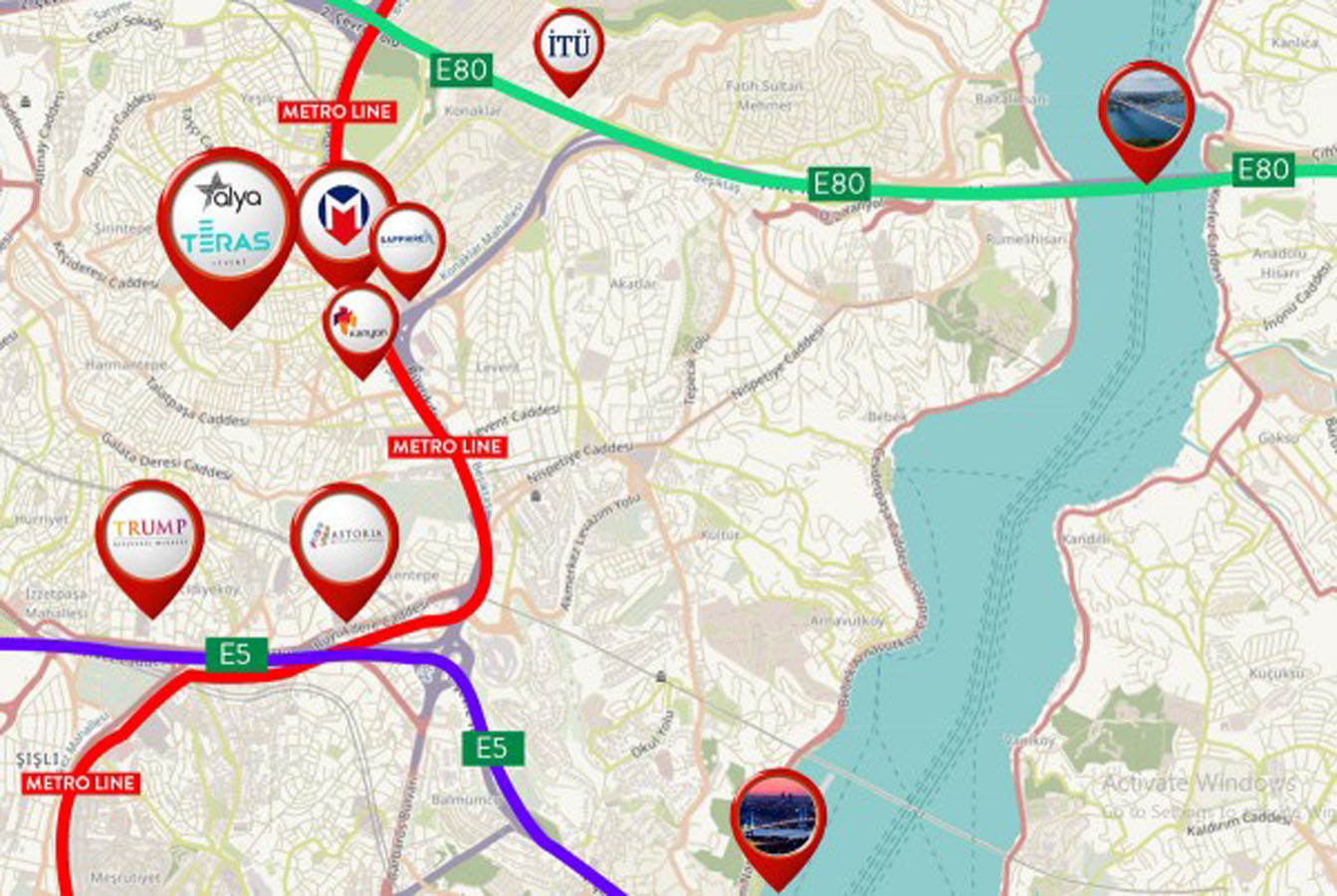Levent is distinguished because it contains many high-rise towers that represent a distinct view. A metro line connecting it to Istanbul various areas also passes through the region.