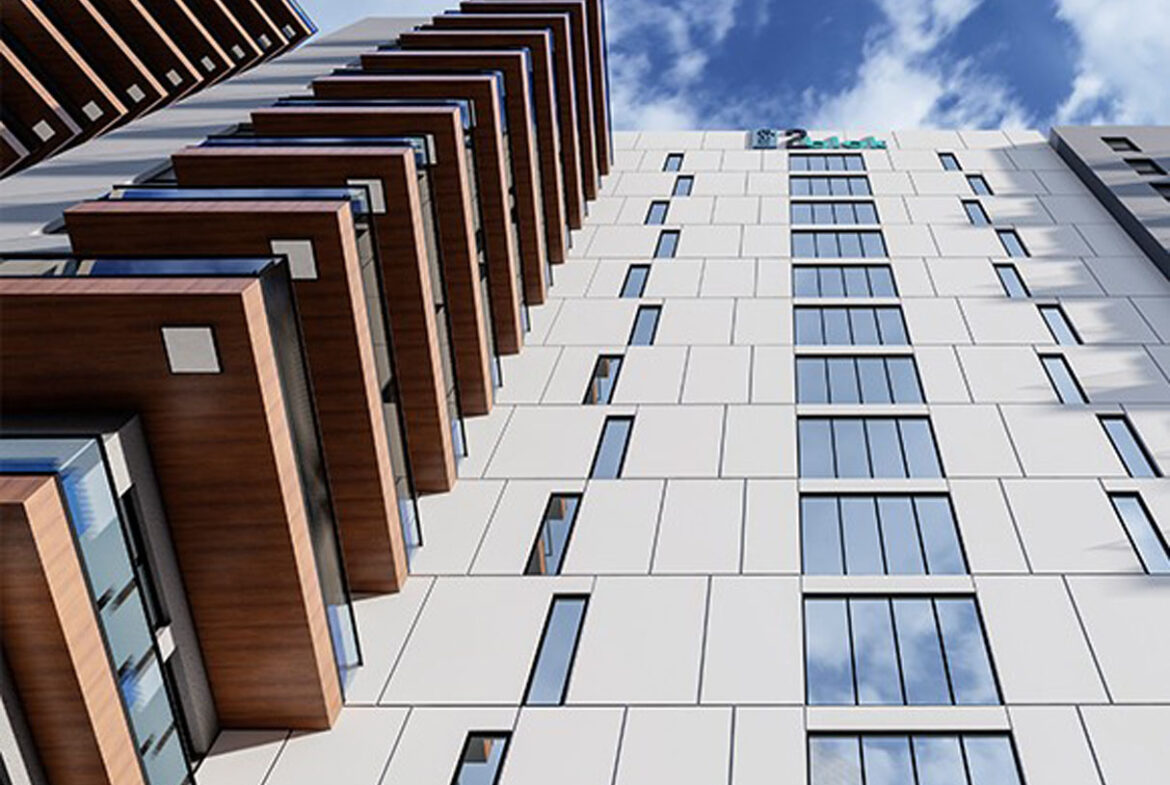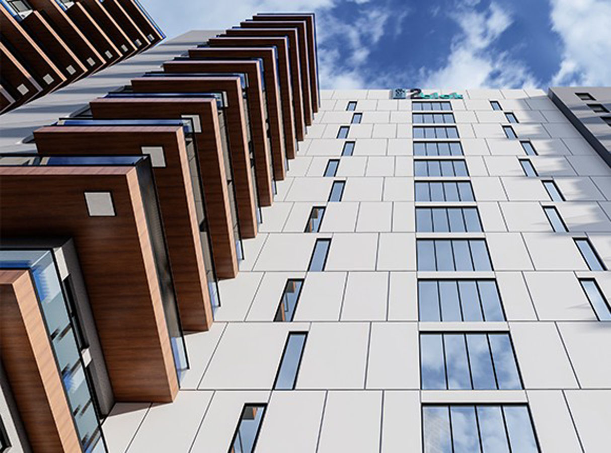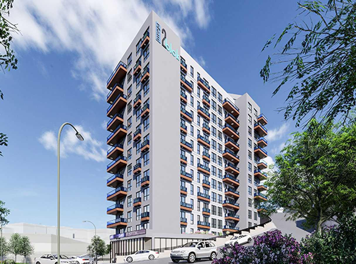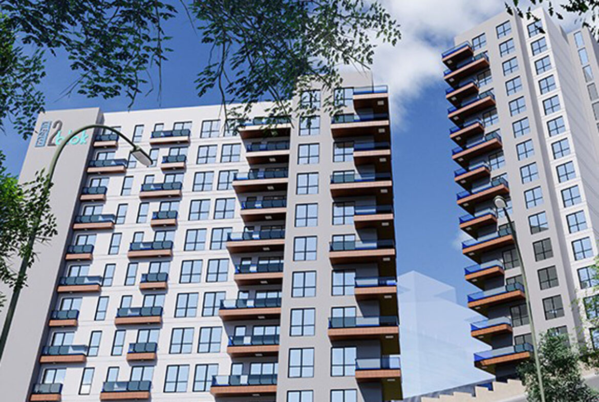 The project consists of two blocks with a height of 12 floors and includes 132 housing units.