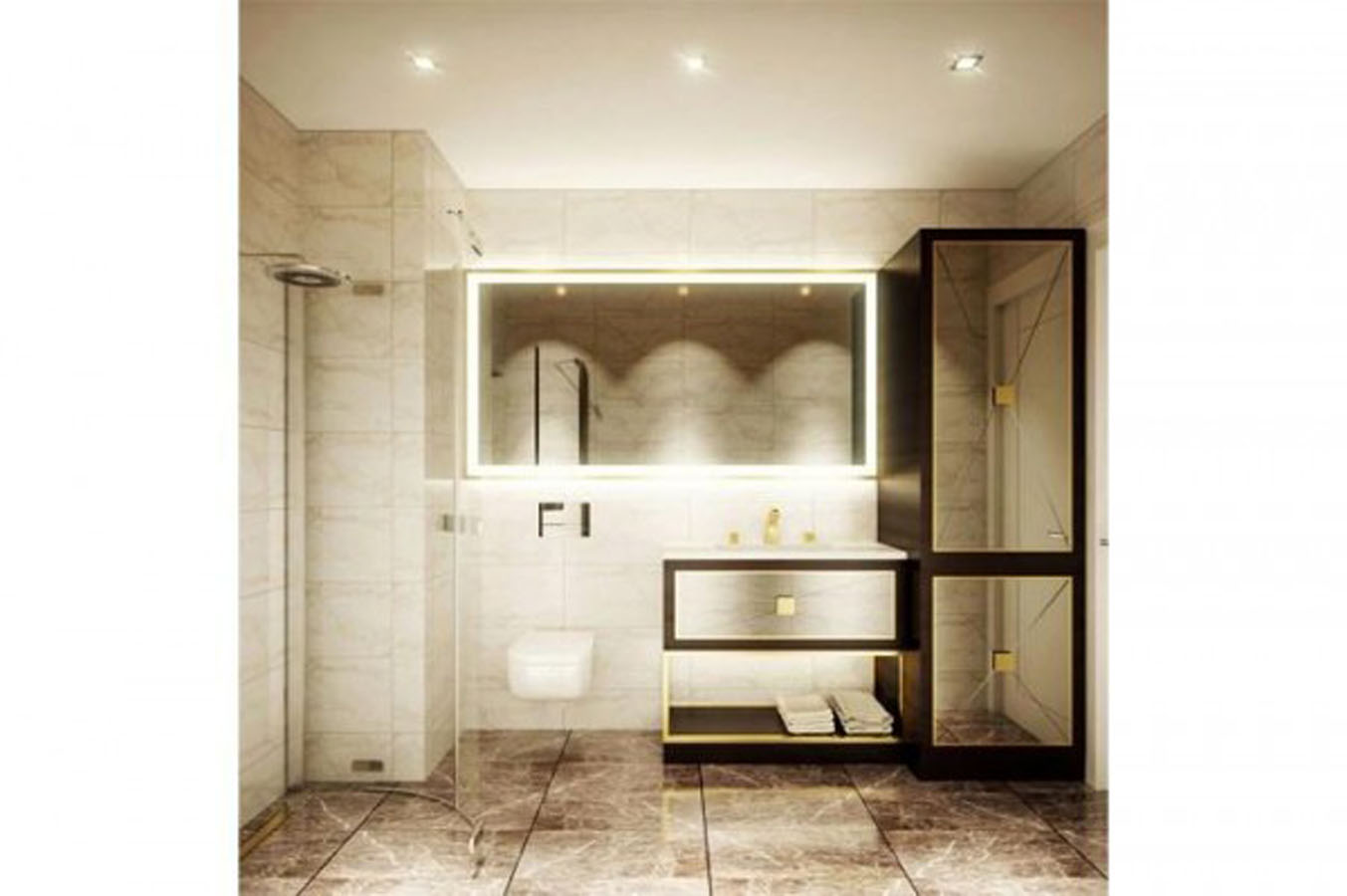 Apartment types vary from one-bedroom to three-bedroom and spaces vary from 73 square meters to 284 square meters. There are several shops below the project, too.